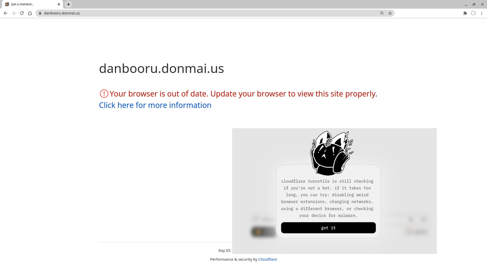 Одну девочку отрезало от очередной части интернета. Отключение uBlock не помогает, в Firefox то же самое. Может user-agent менять попробовать... Пожаловаться больше некуда, так что вот. Сначала блокируют одни, пытаешься просочиться, как "бота" блокируют другие. И у обоих как бы "ничего личного", бездушные машины, бюрократическая и корпоративная. Только легче ли от этого?