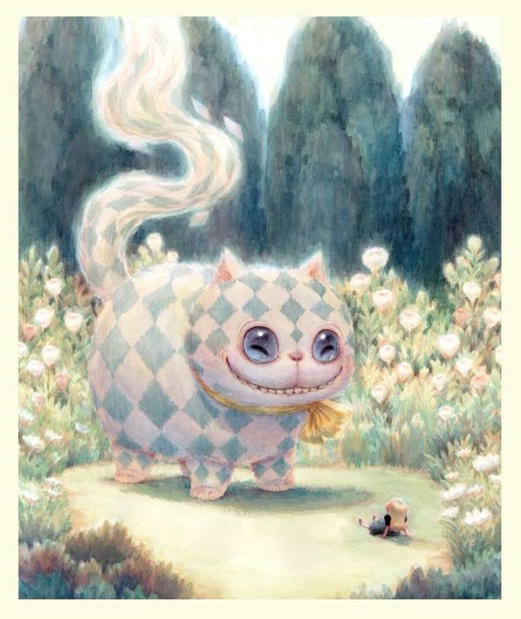 Иллюстрации, экранизации и прочие адаптации следует оценивать по степени чеширности кота. Все прочее - второстепенная ерунда. Ситуация осложняется тем, что в контексте рассказанной истории чеширский кот это вообще не кот. Это некоторая именованная сущность неясного происхождения, обладающая весьма странными свойствами. А вопрос именования сущностей является одним из ключевых и поднимается на всем протяжении и первой и второй книги. По какой-то причине автор упорно именует очевидного не-кота котом - и с этой центральной для вондерленда сущностью связана некоторая загадка. Кот - да не тот. Но все, будто сговорившись, рисуют кота. При этом все коты никакие. Даже самый первый кот никакой - хотя искра чего-то потустороннего сквозь него немного проглядывает. Но чем ближе по времени к настоящему, тем менее выразительны коты. Все силы уходят на довольно бледные вариации образа Алисы и непонятно к чему относящиеся стилизации. Вообще, складывается впечатление, что художественные интерпретаторы в массе своей недопоняли нечто фундаментальное. Не смогли пробиться через потенциальный барьер.