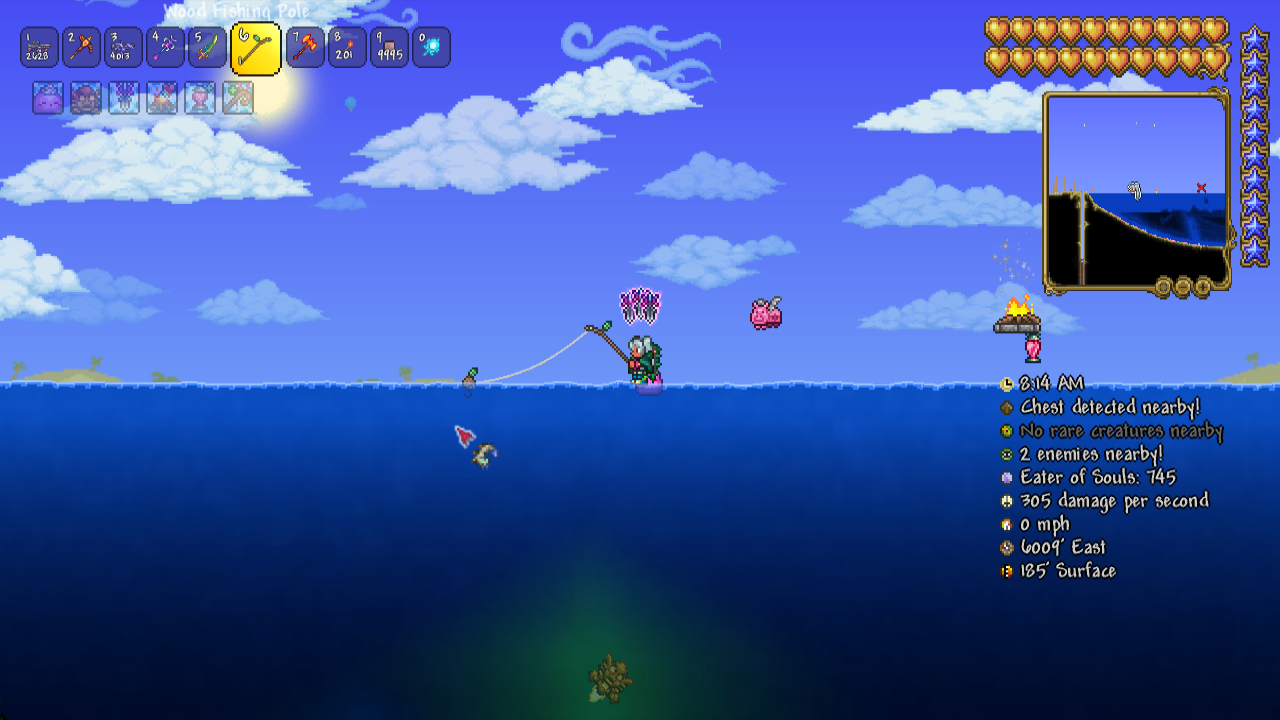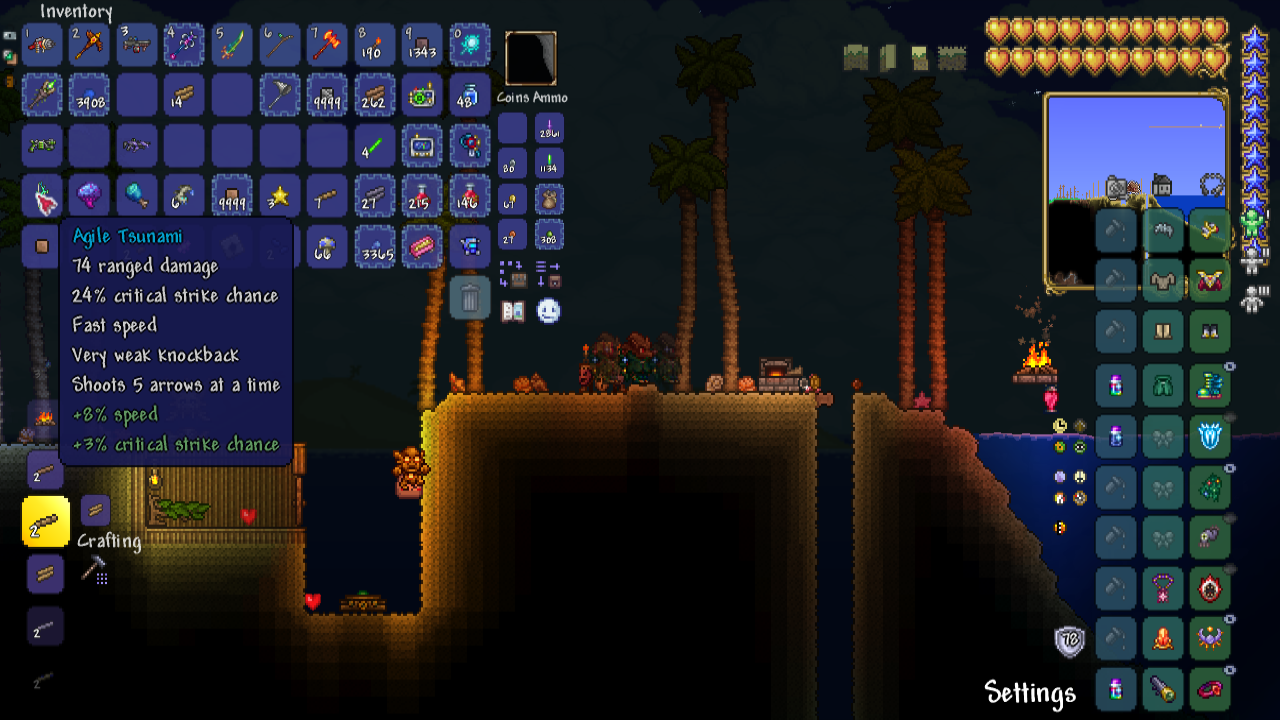 Как-то так. Не знаю что к чем и насколько это "нубский" сетап, но ничего умнее в голову не приходит. Перед лунными ивентами с большой рыбы Цунами падает, вроде как хороший лук, но мне луки что-то не хочется. Хочется что-то другое, а ракетницами играть тоже очень не очень. Не знаю. Там видно будет.