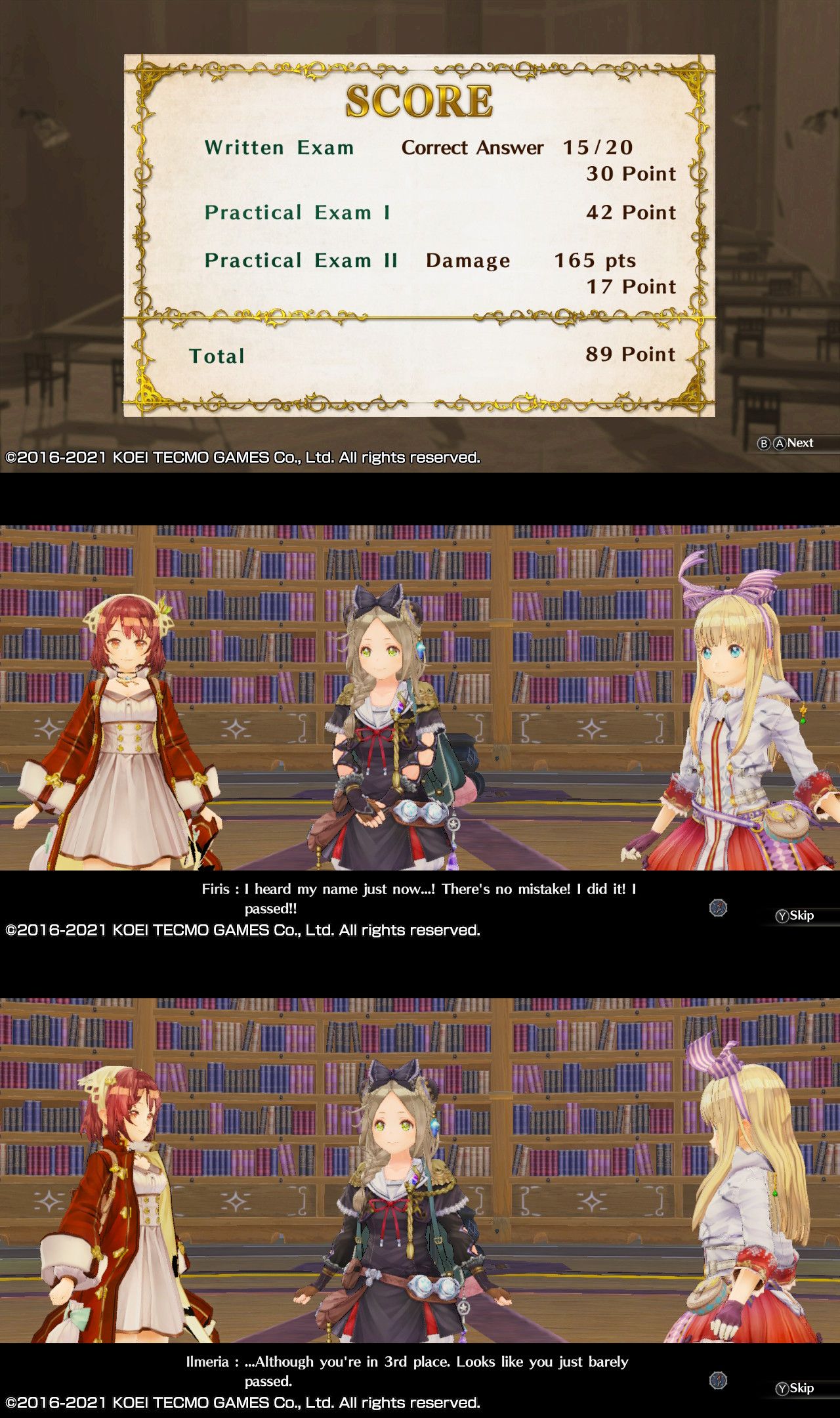 Лоли-Эска. В одном городе с взрослым Лоджи из игры про Софи. Оказывается, правильно думала (>>18704). Эти Эска и Лоджи — другие Эска и Лоджи, не из Dusk. Снова лимит по времени. Ощущается более "давящим", чем в Ayesha, хоть на кону и не спасение сестрёнки, а всего лишь экзамен. И чтобы на него пустили нужно собрать три письма с рекомендацией от алхимиков, которые экзамен уже сдали. Трудно понять темп игры и что она от тебя хочет. В Ayesha были крохотные локации, где ты так или иначе натыкалась на монстров, были квесты, заставляющие использовать алхимию. Прокачка шла равномерно. Тяжело сражаться на очередной полянке? Прокачаться, наварить бомб и рубашек получше, вернуться. А тут большие (в рамках серии) пространства. Мир относительно открытый. Места столько, что любого монстра можно спокойно обойти, вообще не ввязываясь в битвы. Монстры с огромным разрывом в уровнях сидят рядом друг с другом, непонятно, пришла ты сюда слишком рано или слишком поздно для своего уровня. Дни и ночи сменяются, пока бежишь из одного края локации в другой. NPC заваливают побочными квестами, но непонятно, стоит ли награда потраченного времени. Сбор ресурсов и сражения "утомляют" персонажей. В мастерской (она тут портативная, Софи отдала свой шатёр, который наварила в конце первой части) "усталость" автоматически не пропадает, нужно спать или что-нибудь варить. "Вот тебе карта, вот в этом городе будет экзамен. Где искать лицензированных алхимиков, которые дадут письмо? Поспрашивай у человеков в деревнях!". Кроме города на карте ничего особо не обозначено. Пройти напрямик в город, оказывается, не выйдет. Тут тупик, там тупик. О, вот деревня и алхимик! Бегаешь, сторонясь монстров, опасаясь лишний раз что-то скрафтить, что-то лишнее подобрать. Непонятно как долго идти до города, в каком из "тупиков" искать деревню с алхимиком, какой уровень алхимии потребуется для выполнения его квеста. Вместо того, чтобы играть, смотришь на утекающие дни на таймере. За ~шестнадцать часов cобрала три писма, дошла до города. Сотня с небольшим внутриигровых дней от ~года остались. Толком не сражалась, толком не крафтила. Будет обидно, если выяснится, что я делала всё не так, времени нет, экзамен не сдать. Эта игра вернула мне кошмары про экзамены в школедиплом в институте, а я совсем ничего не знаю, даже тему не помню. Сама Фирис какая-то излишне шумная глупица.