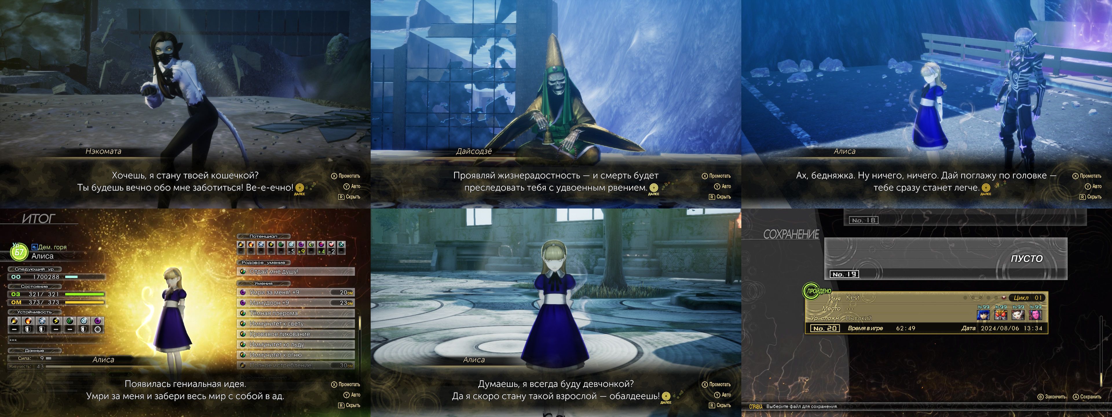 Прошла новый рут в Vengance. Немного новых демонов, новые боссфайты, одна новая локация взамен одной старой. Сюжет как был не особо сюжетным, так и остался. Алтернативное развитие событий по типу "Что, если…?". Не уверена, стоит ли оно фуллпрайса для тех, кто уже проходил оригинал. Но мне игра очень нравится, поэтому осталась полностью довольна. Для тех, кто оригинал не проходил, нужно проходить обязательно (если нравятся видеоигры)! К тому же, она теперь на всех платформах вышла. Оригинальная игра + новый сюжет + старые DLC в комплекте (с fiend-боссами, Артемидой, Клеопатрой и Мефистофелем). Красота! В версии для Switch теперь японская озвучка прямо в коробке, не нужно отдельно докачивать её из eShop'а. Вышла на концовку Хаоса. Как поняла, в новом сюжете их всего две. Из особо понравившегося — собакодевочка. Забавно сидит сложив ступни и расставив колени, забавно бегает и кричит "Matte, matte, matte~". https://megamitensei.fandom.com/wiki/DormarthНо кошкодевочки, всё же, лучше. Новую героиню озвучивает Крабогахара. И в ней прямо отчётливо слышно голос и интонации Крабогахары (из озвученных ей игровых персонажей сходу вспомню только Патти из Tales of Vesperia и Азами из второй Xenoblade, вторая более-менее похожа на Гахару, первая вообще не). Любительницам Гахары понравится.