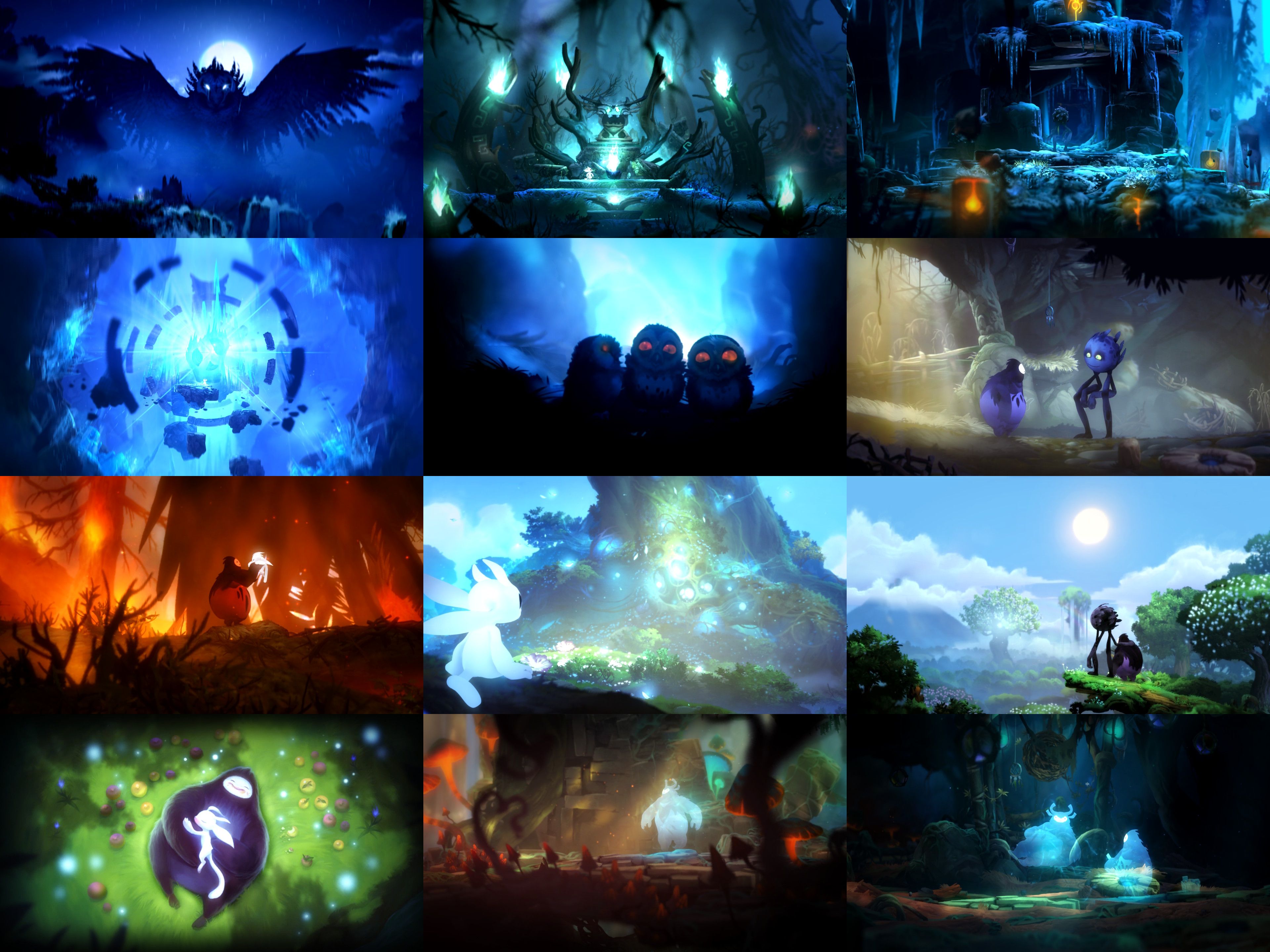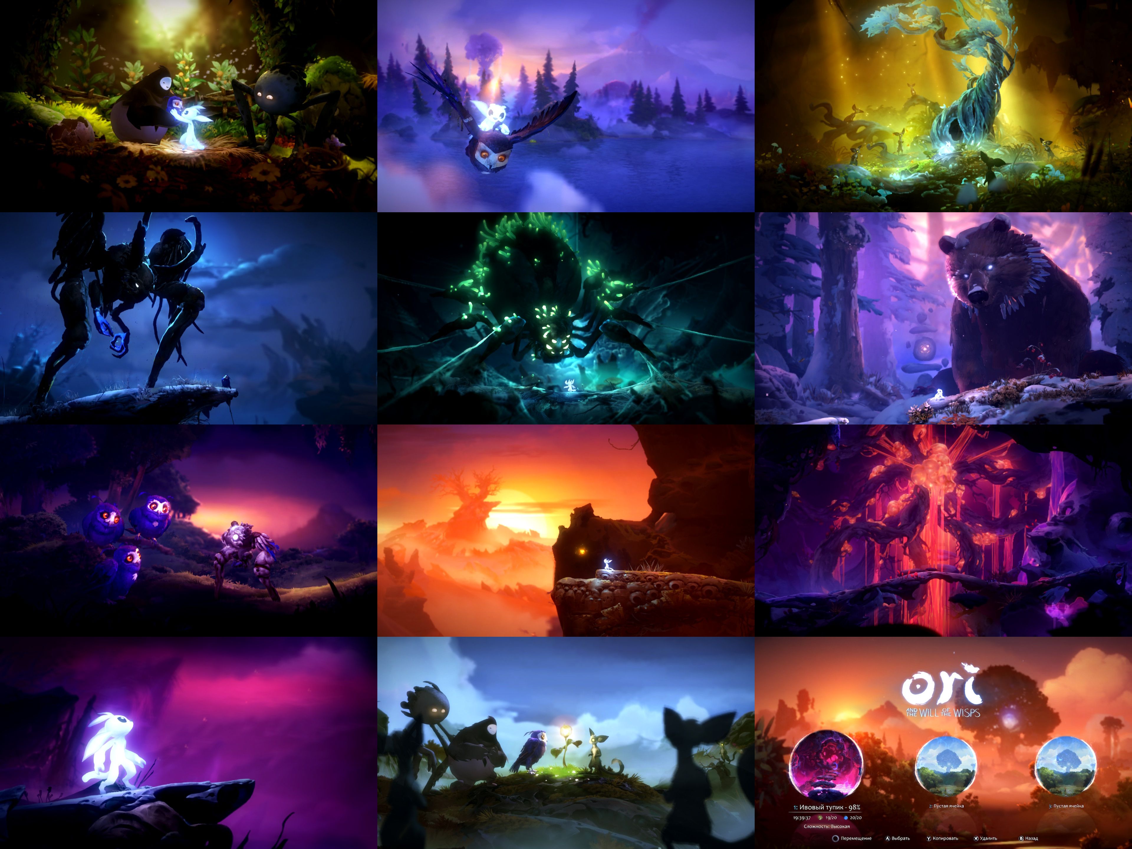 Сообщение "ту лонг". Заскриптованные сценки с побегом из разрушающейся локации ощущаются нечестными. Затапливают водой, скидывают на тебя огроменные штуки, травят птицами. «Бум», Ори раздавлен булыжником. «Бум», упал в пламя. Булыжник занимает большую часть экрана. Безопасный «островок» в море пламени малюсенький. Останавливаться нельзя, нужно бежать. И за первую попытку ты просто не успеешь разглядеть место, где можно увернуться от опасности. И за вторую. И иногда за третью. Чтобы пройти сегмент, нужно знать как его проходить. Хотелось бы, чтобы платформер поощрял реакцию и точность, а не запоминательтсво. Платформер! Как «метроидвания» игра так себе. Локации ощущаются слишком линейными. Новые способности не переплетают их в хитрую паутину, а просто позволяют войти в новый линейный сегмент. В лучшем случае — открыть крохотный «аппендикс» в старом, где будет лежать бесполезная сферка опыта или ячейка здоровья. Весь кусочек почти всегда заранее видно целиком, как и награду. В какой-то момент смирилась с линейностью и шла туда, куда сказали идти. Для этой тёмной пещеры ведь дадут потом какой-нибудь «фонарь»? Прошла игру, «фонаря» не дали. Локация с тёмной пещерой — единственная необязательная (достаточно интересная, да). Награда — аж целых две новых абилки. Две абилки, нужных настолько, что игра проходится без них. И пара заставок. Но теперь можно открыть ещё несколько комнатушек-ответвлений со сферками опыта! Коротенькая, надоесть не успевает. Как и окончательно выбесить. Красивенько. Трава с листочками колышутся, подвешенные платформы качаются, анимации Ори симпатичные, «передний план» наплывает, ВСЁ ВОКРУГ СВЕТИТСЯ! Музыка приятная. Но слушать в отрыве от игры не стану. Фрагменты игры, где нужно запоминать куда бежать — запоминаются! Скакать над лавой по снарядам врагов весело. И бегать поверхностям с изменённой гравитацией. Тут есть сова Брынза Куро, которая недолюбливает Свет. Помнится, украла версию для ПК почти сразу, как она вышла. Игра требовала контроллера для Xbox, а у меня тогда был дешёвый DVTech. Кнопки получались назначены вкривь и вкось. Пробовала перенастроить сторонней биндилкой, но была какая-то беда со стиками, которую починить так и не удалось. То ли местами они были «перепутаны», то ли оси были назначены не так. Не поиграла. Начну вторую сразу, чтобы не валялась. Может разработчики наслушались подобного нытья и всё сделали лучше? Видите на видео оставшихся "гусеничек" в кучке СВЕТЯЩИХСЯ шариков? А они есть!